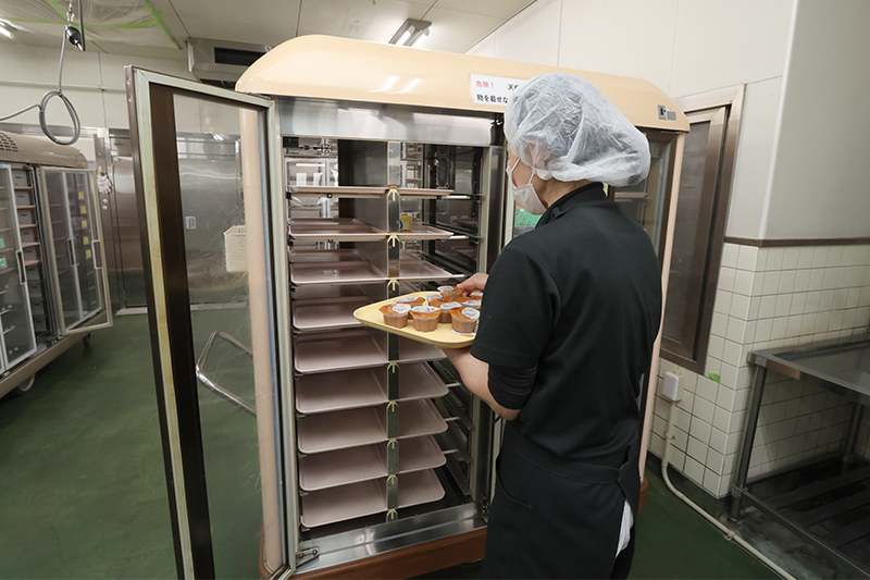 栄養課では、衛生管理・食材料管理を徹底し、「安心・安全な食事」を提供できるよう努めています。現在、病院・介護医療院・老人保健施設あんじゅ合わせて1日約450食の食事を提供しています。